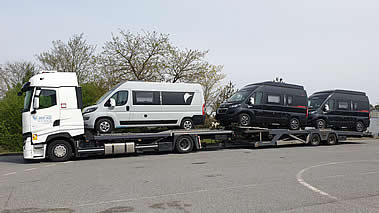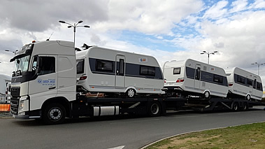 Qu’il s’agisse de caravanes, de camping‐cars partiellement ou totalement intégrés, nos camions remorques plateau transportent des véhicules de Loisirs de manière fiable et entièrement assurée vers leur destination dans toute l’Europe depuis plusieurs décennies.